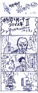 This webcomic was published on GRASSHOPPER MANUFACTURE‘s website between 2001 and 2004. A total of 31 issues were produced, however, all but 12 are now considered lost, except for a single panel from a missing issue featured in a later interview with SUDA51. The series starred Hopperman, GRASSHOPPER‘s mascot established during the company’s early years.